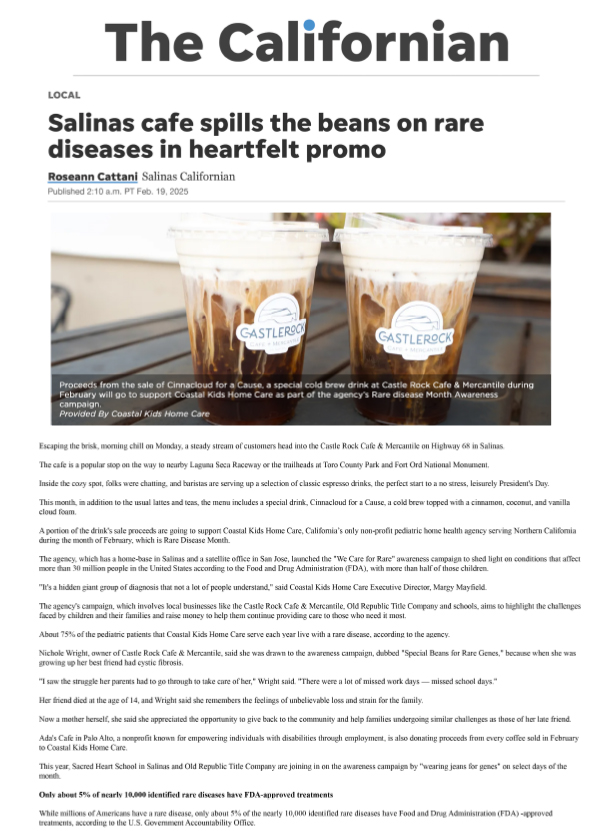 Coastal Kids Home Care & Ada’s Cafe Partner for Rare Disease