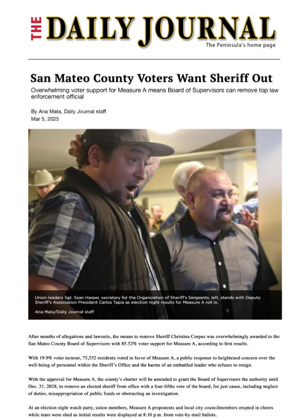 San Mateo County Board of Supervisors Unanimously Vote Out Christina Corpus on KPIX